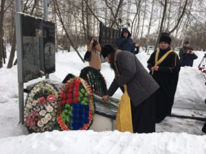 Собравшиеся почтили память погибших минутой молчания и возложили цветы к мемориалу.